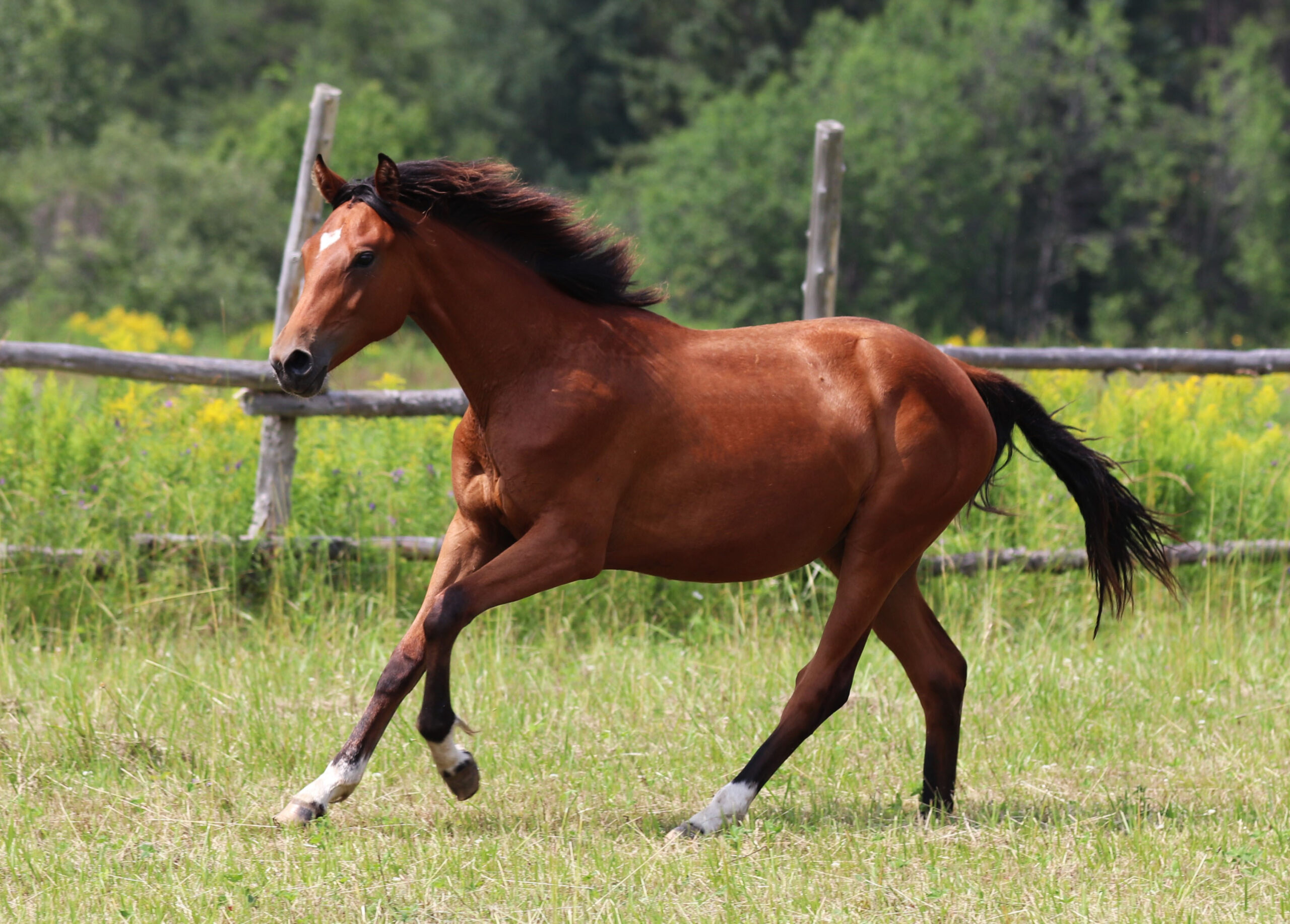 Esmeralda est une jument qui impressionne dès le premier regard. Fille de Perceval, un étalon ayant marqué le paysage équestre québécois par la qualité de sa descendance, elle incarne à merveille la puissance tranquille et l’élégance naturelle.