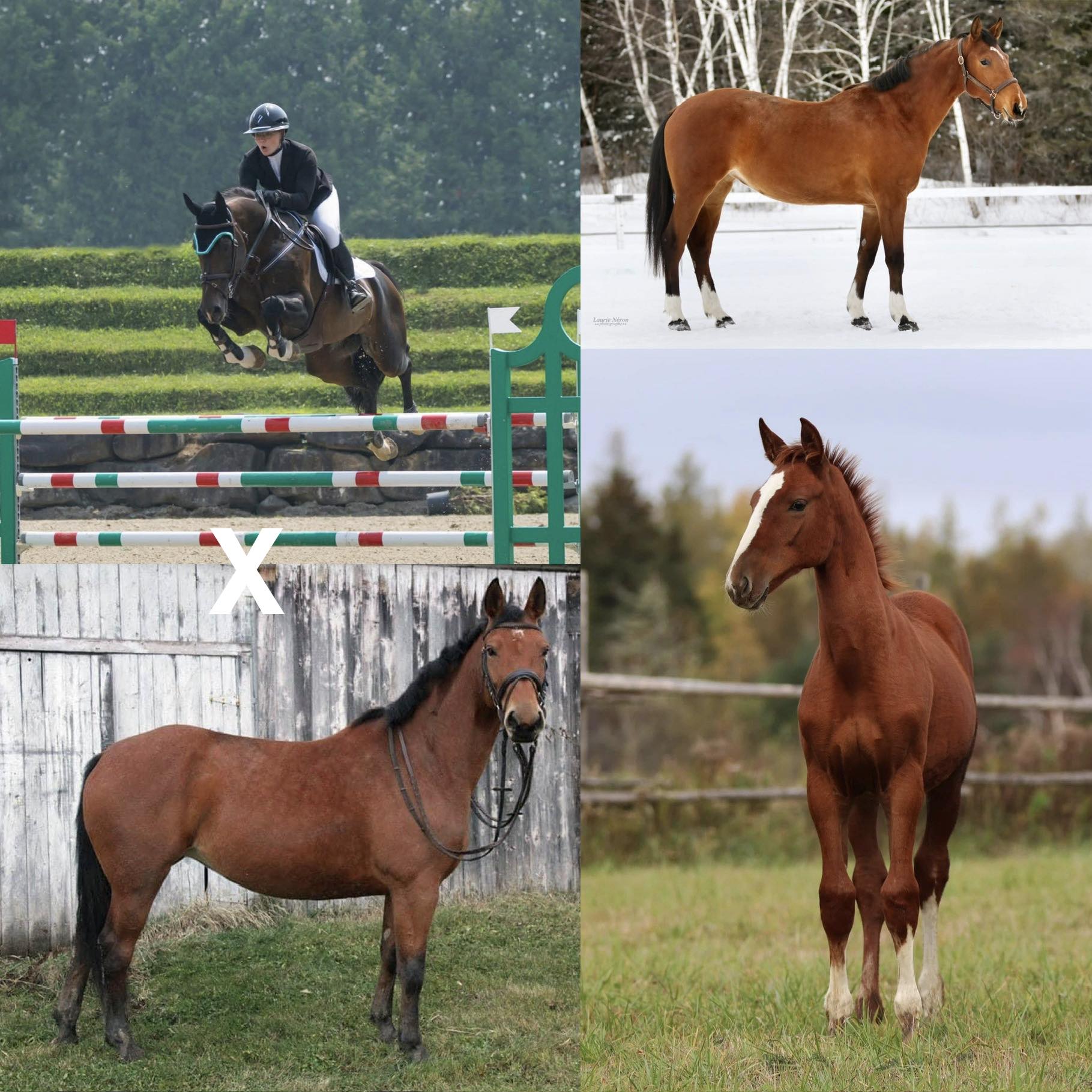 Nos juments et étalons reproducteurs sont sélectionnés avec soin pour leur excellent potentiel dans les disciplines hunter/jumper, la fluidité et l’élégance de leurs allures, ainsi que pour leur tempérament doux et coopératif. Ces qualités sont essentielles pour obtenir des chevaux polyvalents, aussi agréables à monter qu’à côtoyer au quotidien.